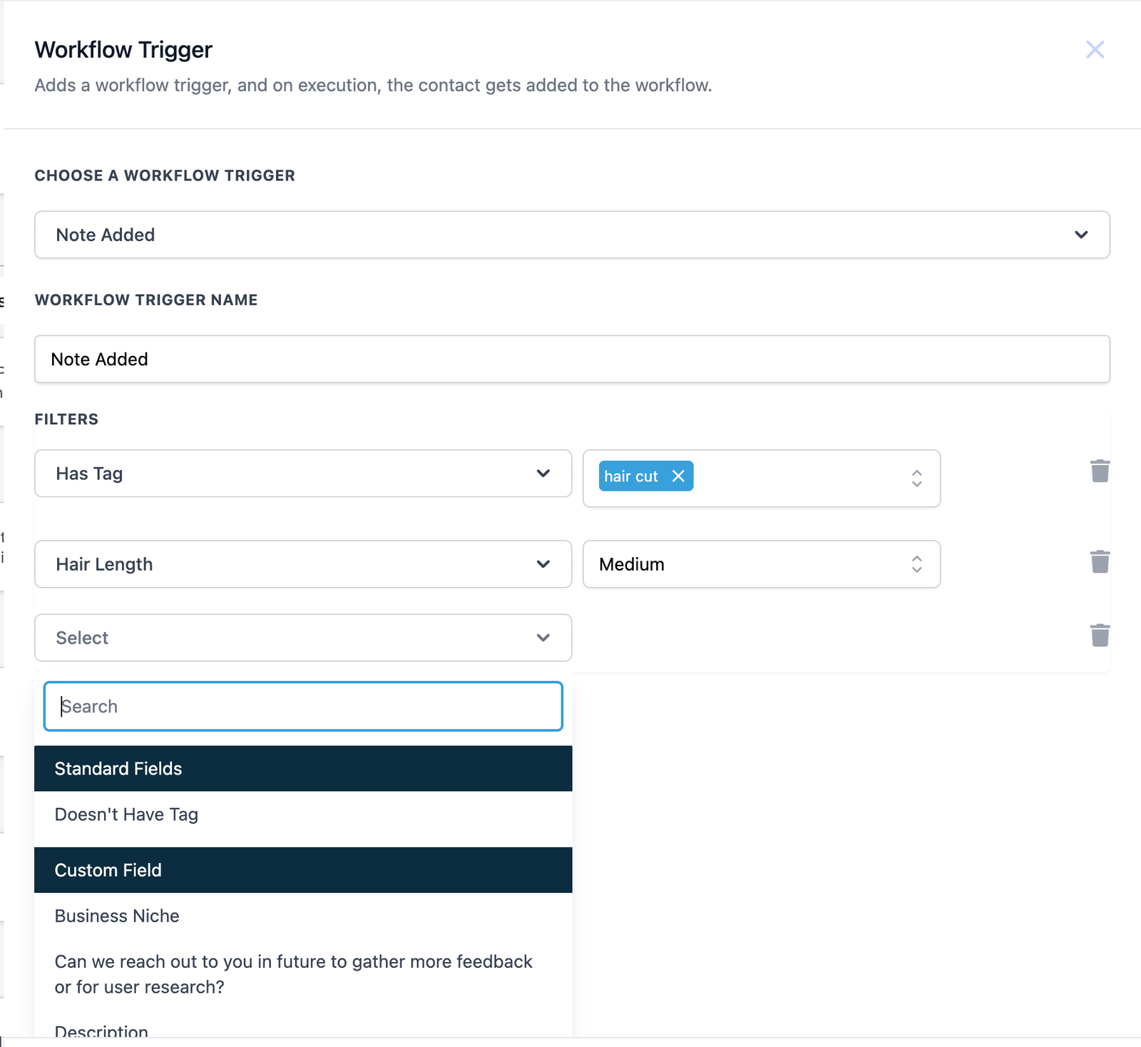 - Choose a Workflow Trigger: Select “Note Added” from the list of available triggers.