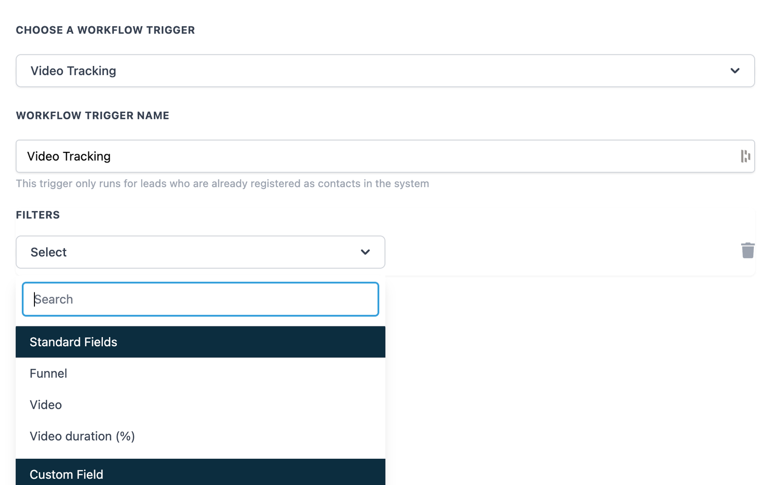 | Video Duration (%) | Set the specific percentage (e.g., 25%, 50%, 75%, or 100%) that will trigger the workflow. | No |