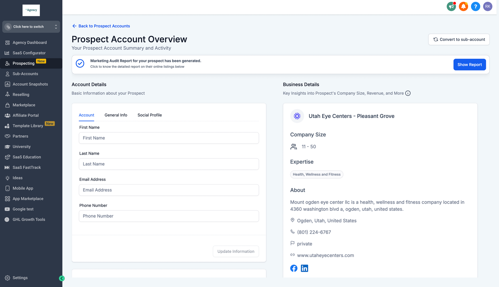 • We have created a new Prospecting Tool Widget that helps agencies generate leads easily. Visitors to your website can fill in their business information and receive insights about their listings, reviews, website performance, SEO, and more. Agencies can create this widget in the Prospecting Tool and embed it in their website for the leads to directly fill their information when they visit the website. Prospects who visit via this Widget can be seen in the dashboard under the tag “Forms”.
