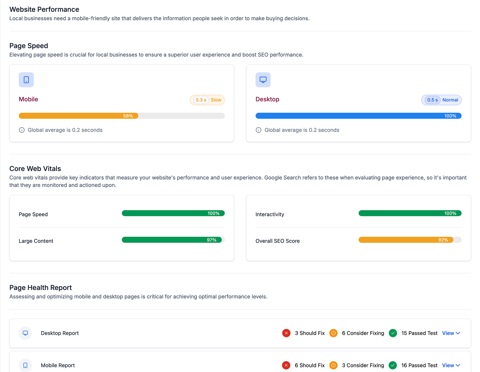 • Mobile vs. Desktop Health Report: Compare the website’s performance and usability on mobile devices versus desktops, identifying optimisation needs for different platforms.
