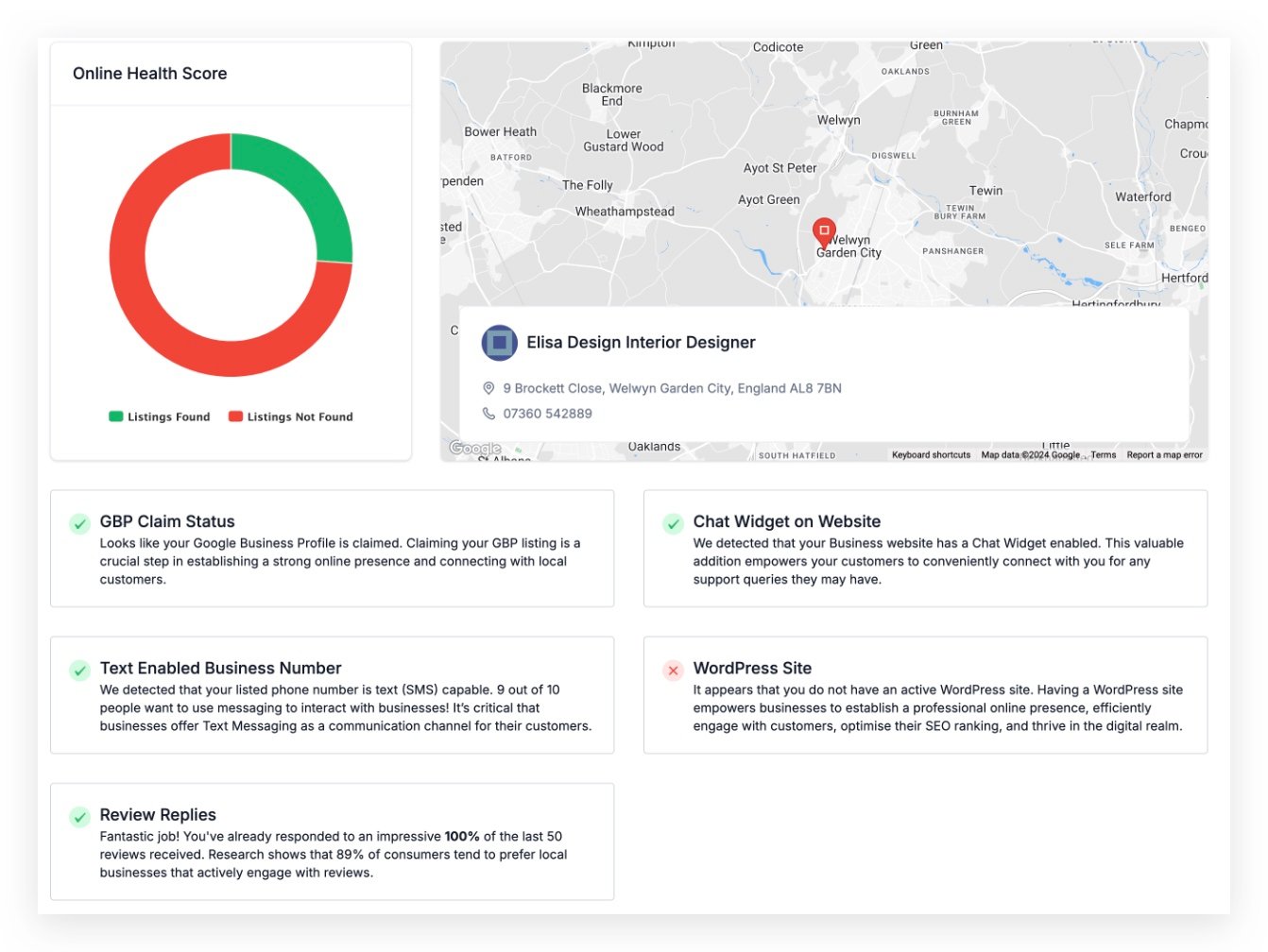 • Text-Enabled Business Number: Highlights whether the business utilises a text-enabled phone number, facilitating direct communication with customers.