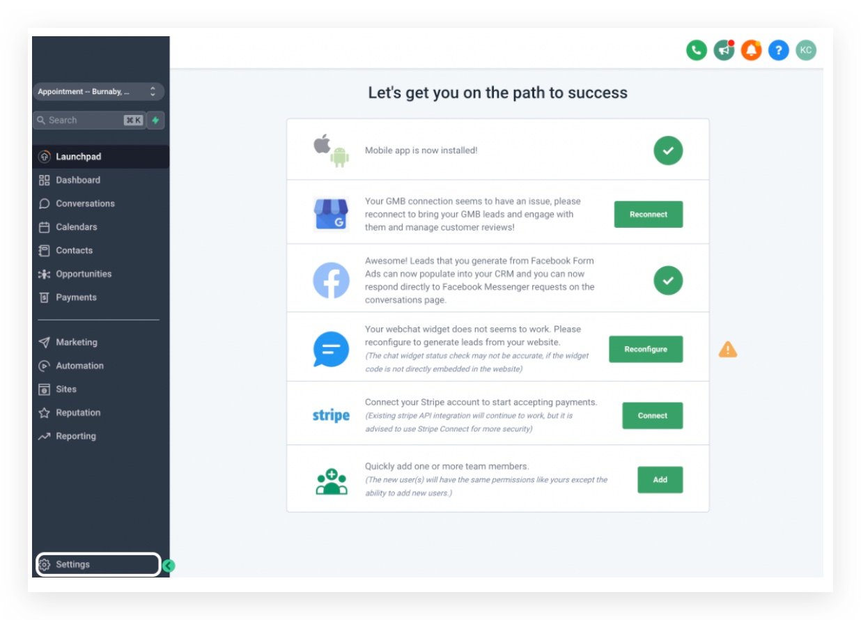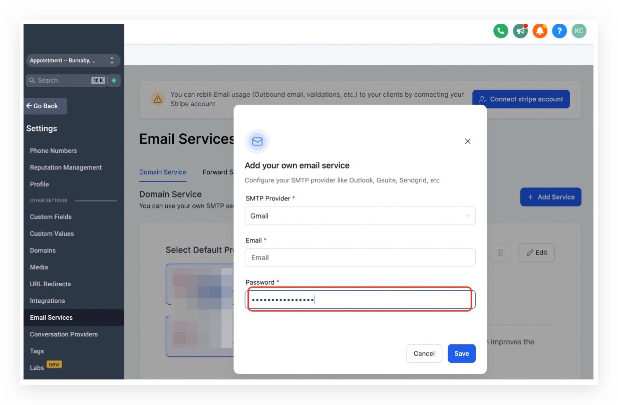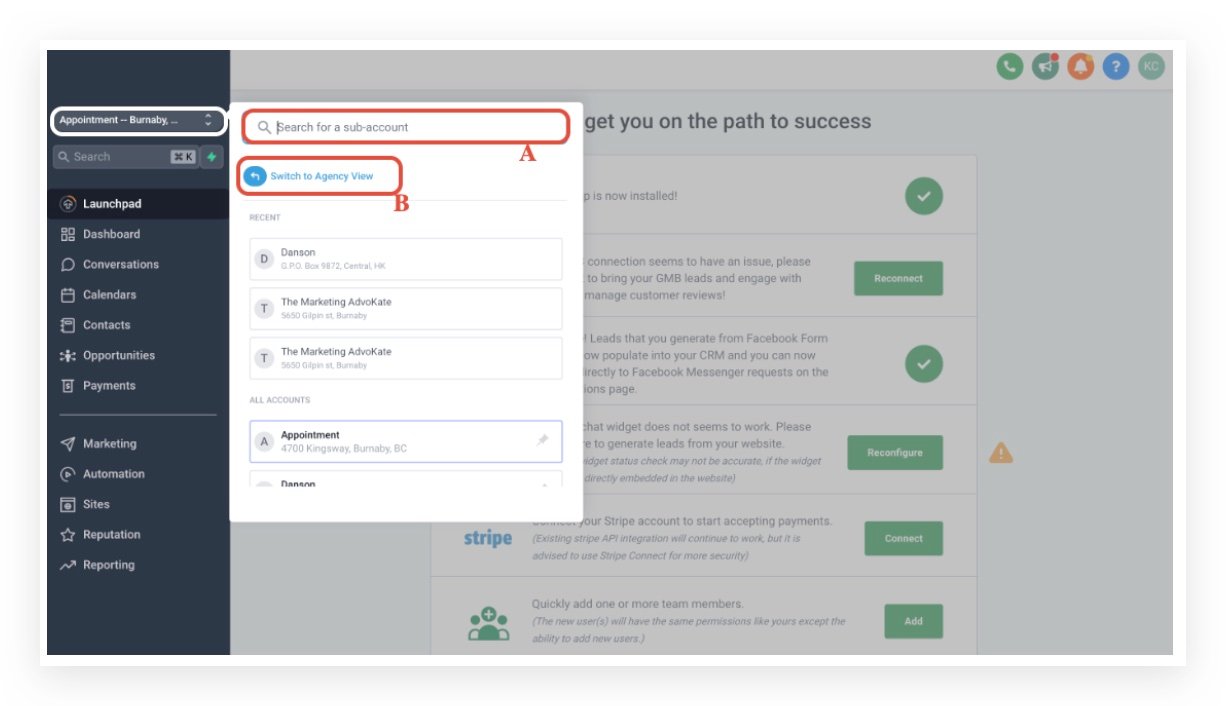 12. A. Search for a sub-account if you want to integrate Gmail SMTP for a location