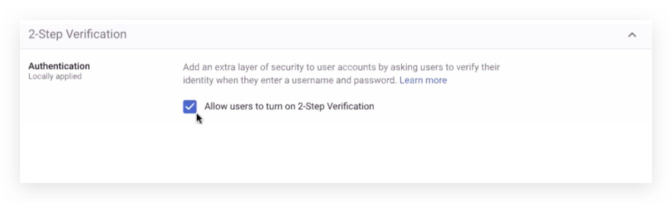 Ensure the option to Allow users to turn on 2-Step Verification is enabled.