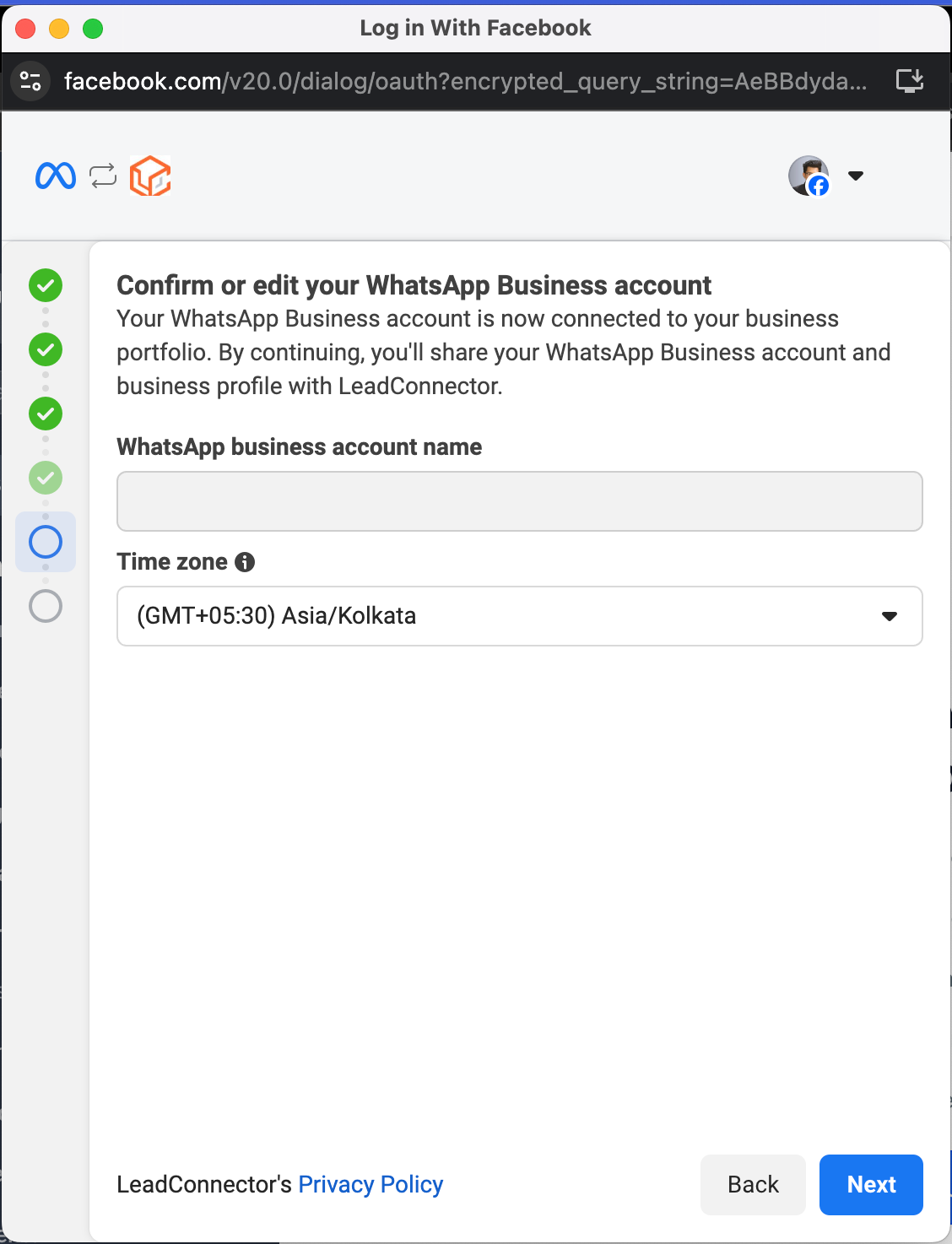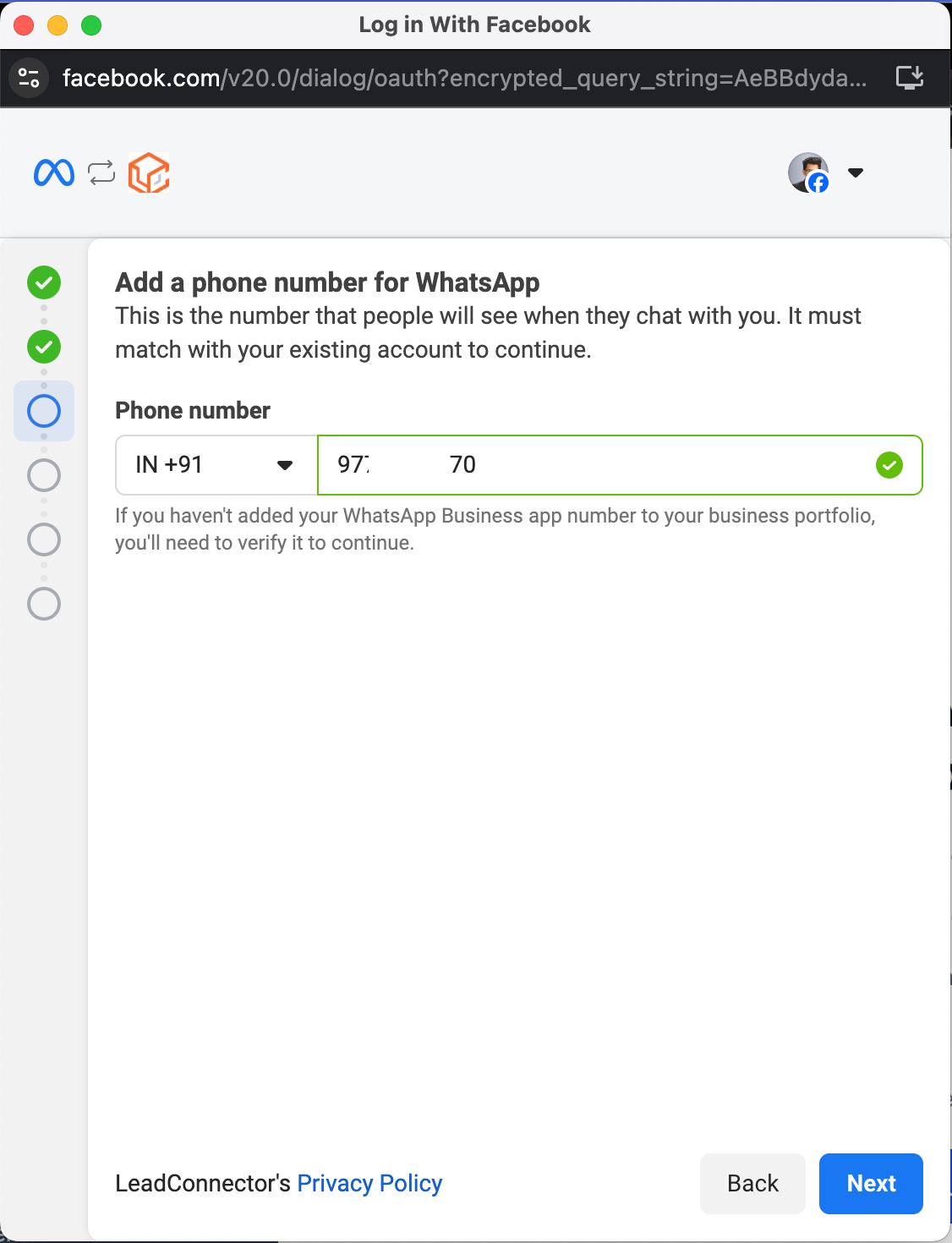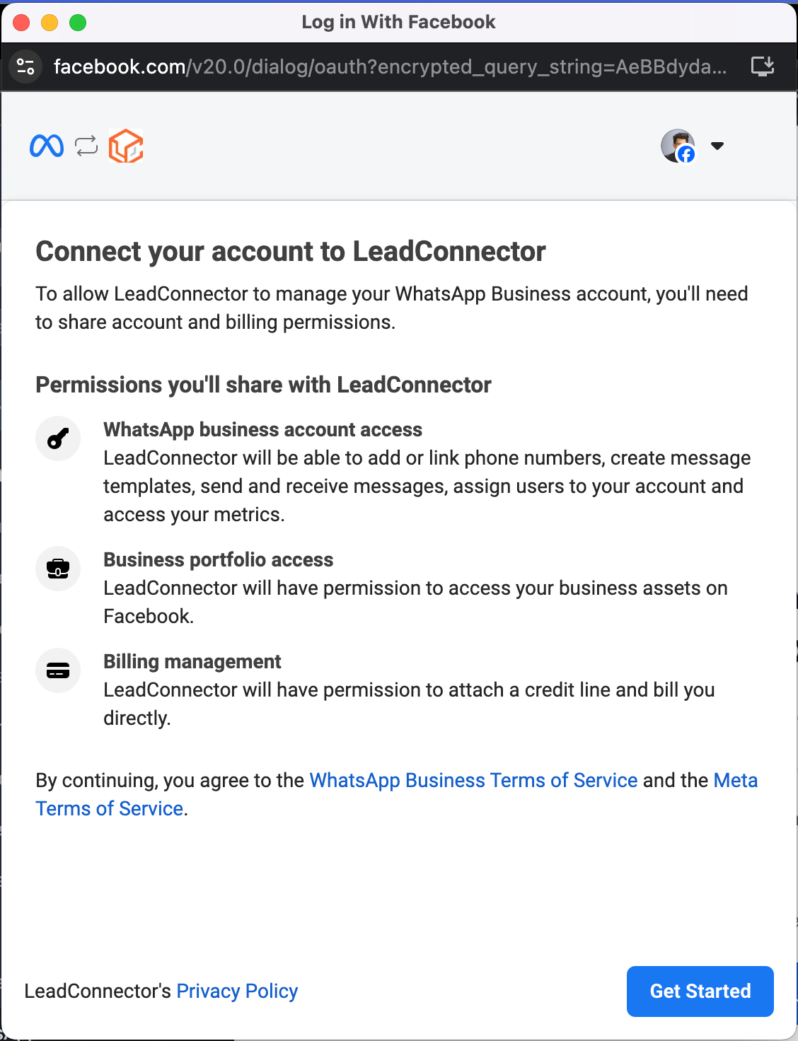Share your WhatsApp business account with LeadConnector. You will still have full access