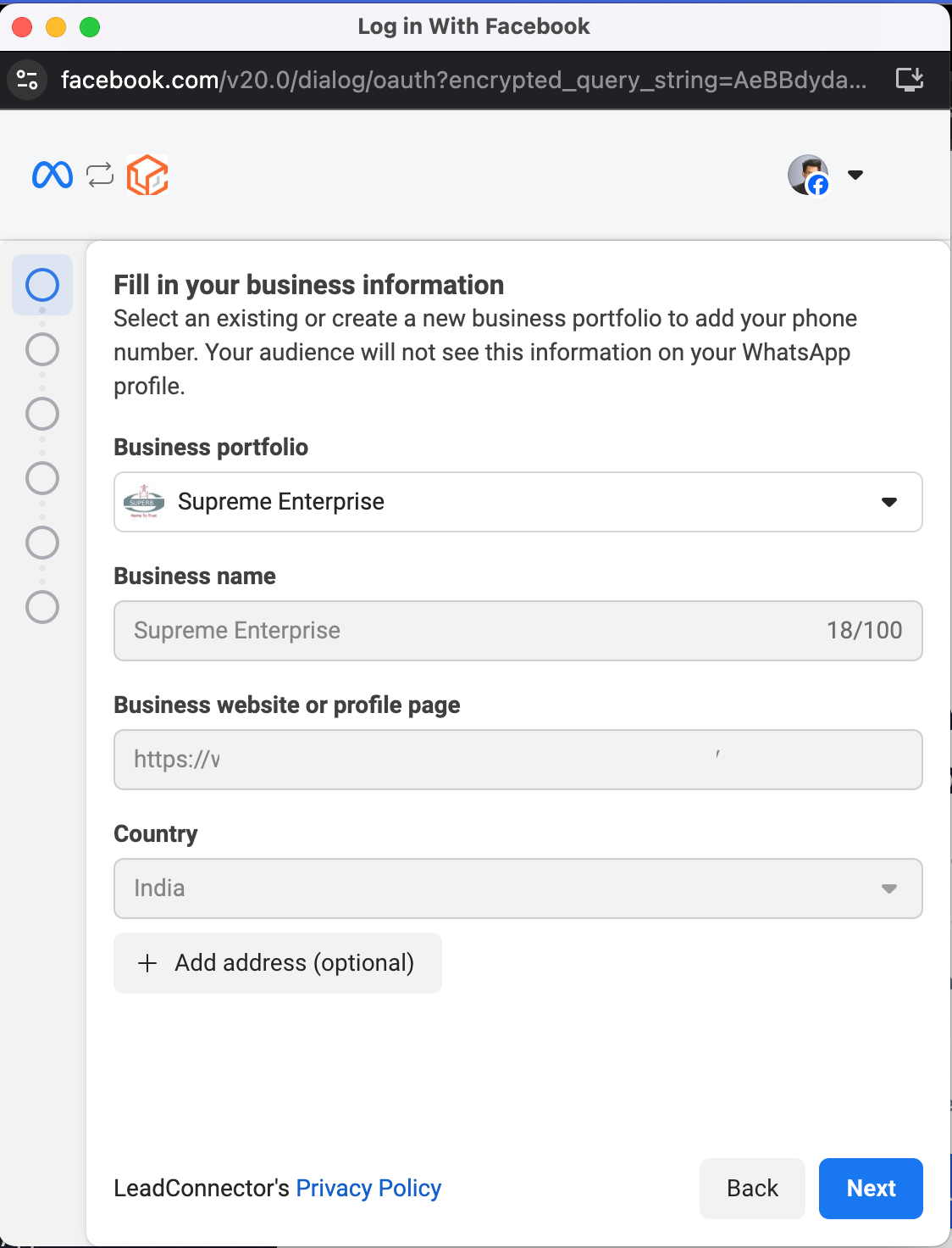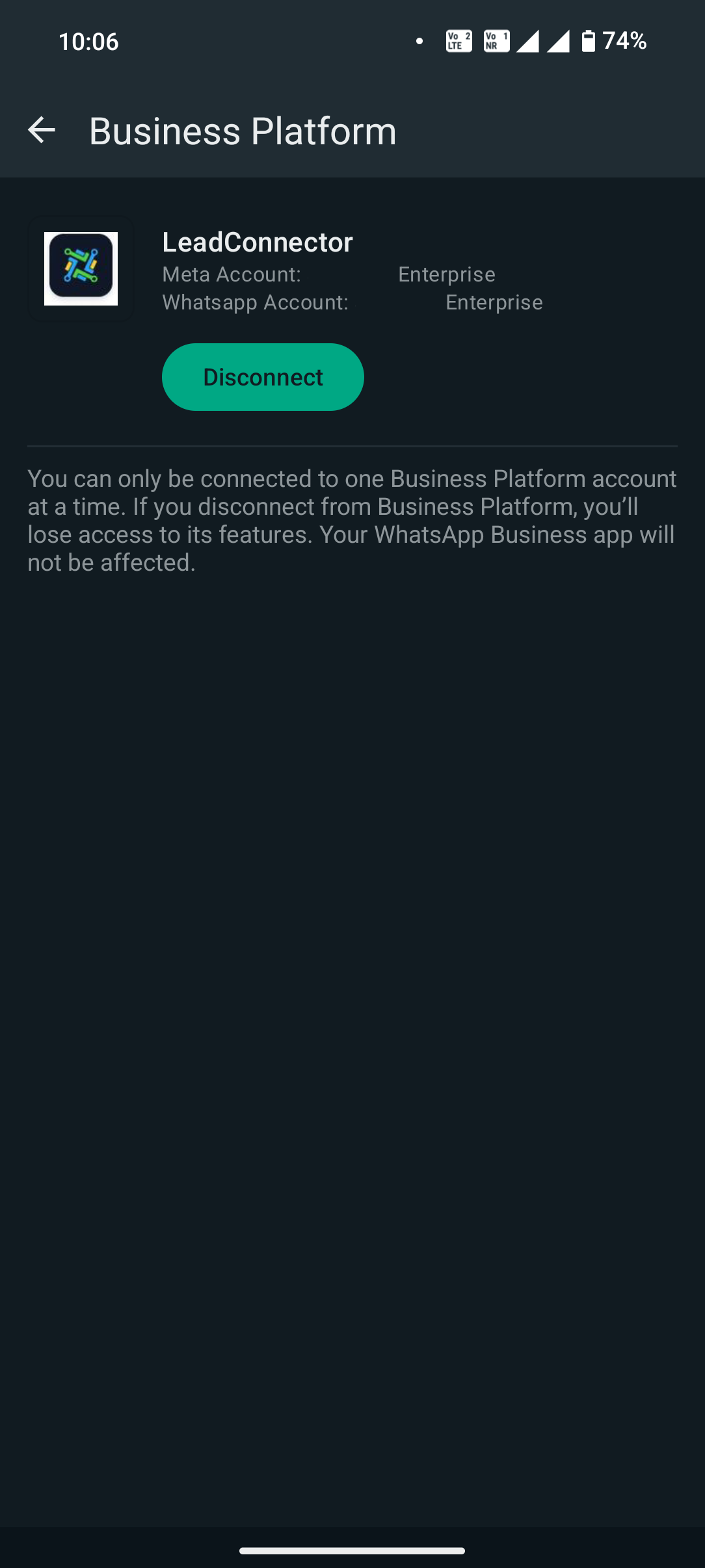 5. You should have never integrated with LeadConnector, if you have then you need to delete your WABA account, download WhatsApp Business app and signup again