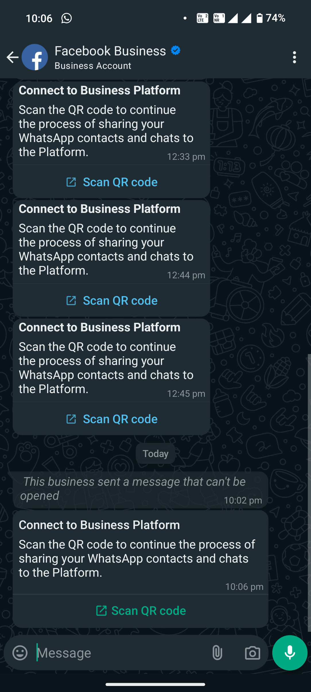Look for a message from the official Facebook business account and tap Scan QR code