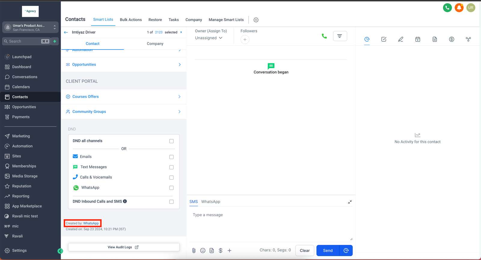 - Your chat conversations will be accessible under the ‘Conversations’ tab in the GoHighLevel CRM.