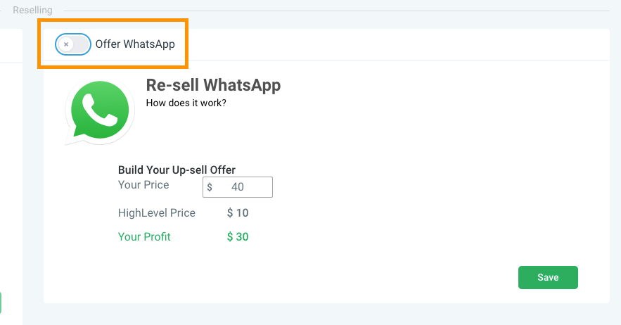 Step 2: Scroll down to the reselling section -> Disable WhatsApp by toggle -> Hit Save