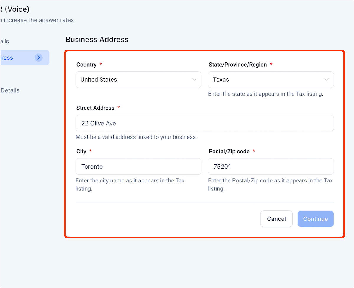 3. Fill out Business Address