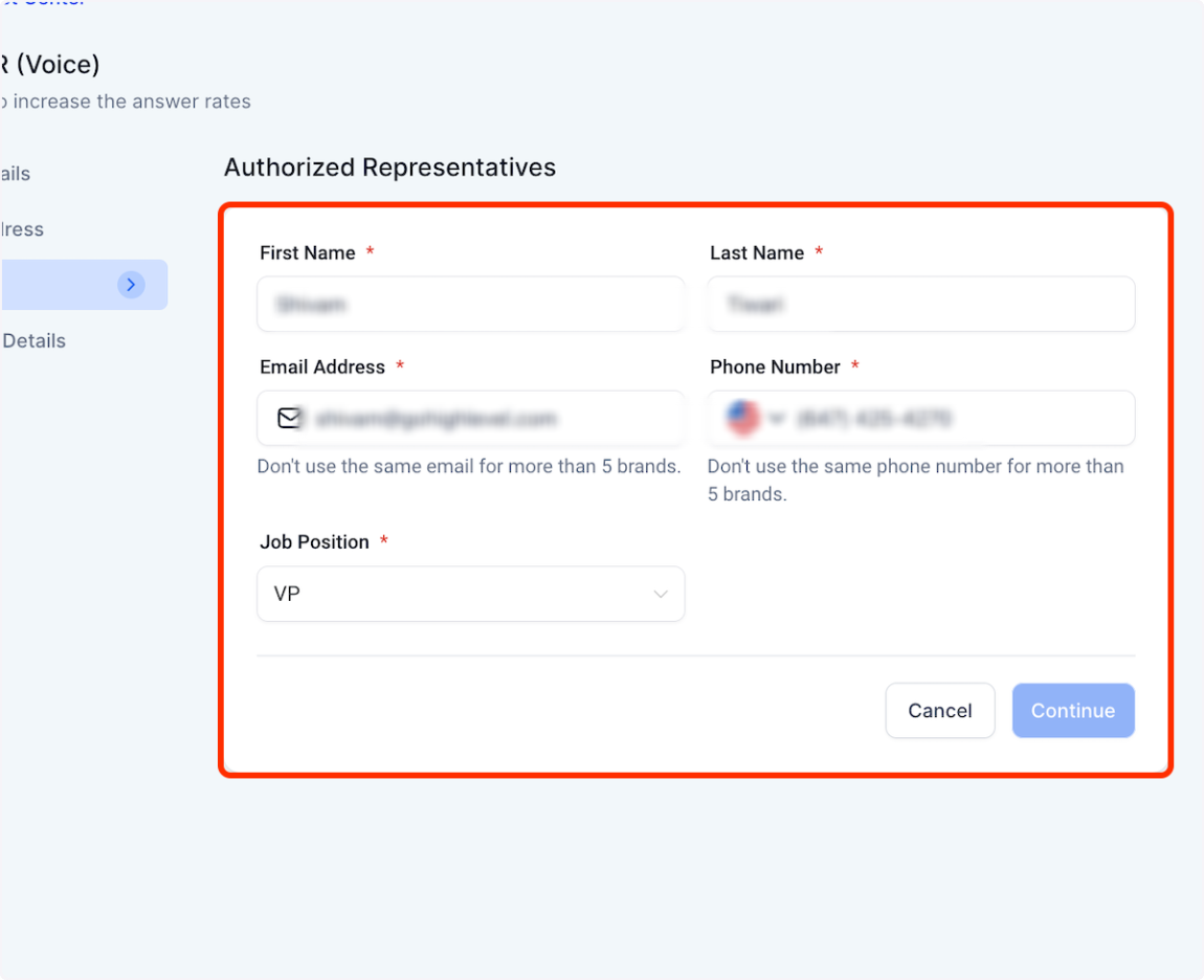 4. Fill out Authorized Rep details