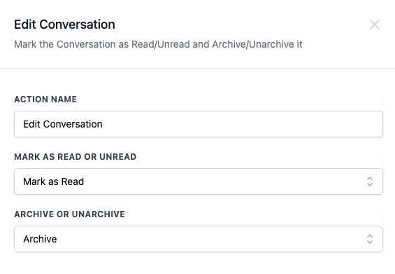 | Mark as Read or Unread | Choose to mark the conversation as either read or unread. Options include: <ul><li>None</li><li>Mark as Read</li><li>Mark as Unread</li></ul> | No |