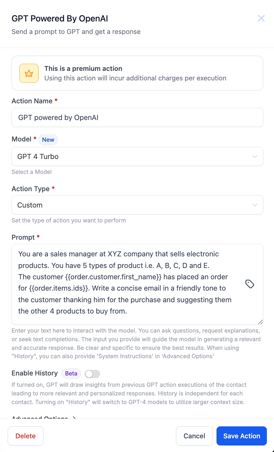 - GPT Powered by OpenAI: Prepare an email using the customer name and product information.
