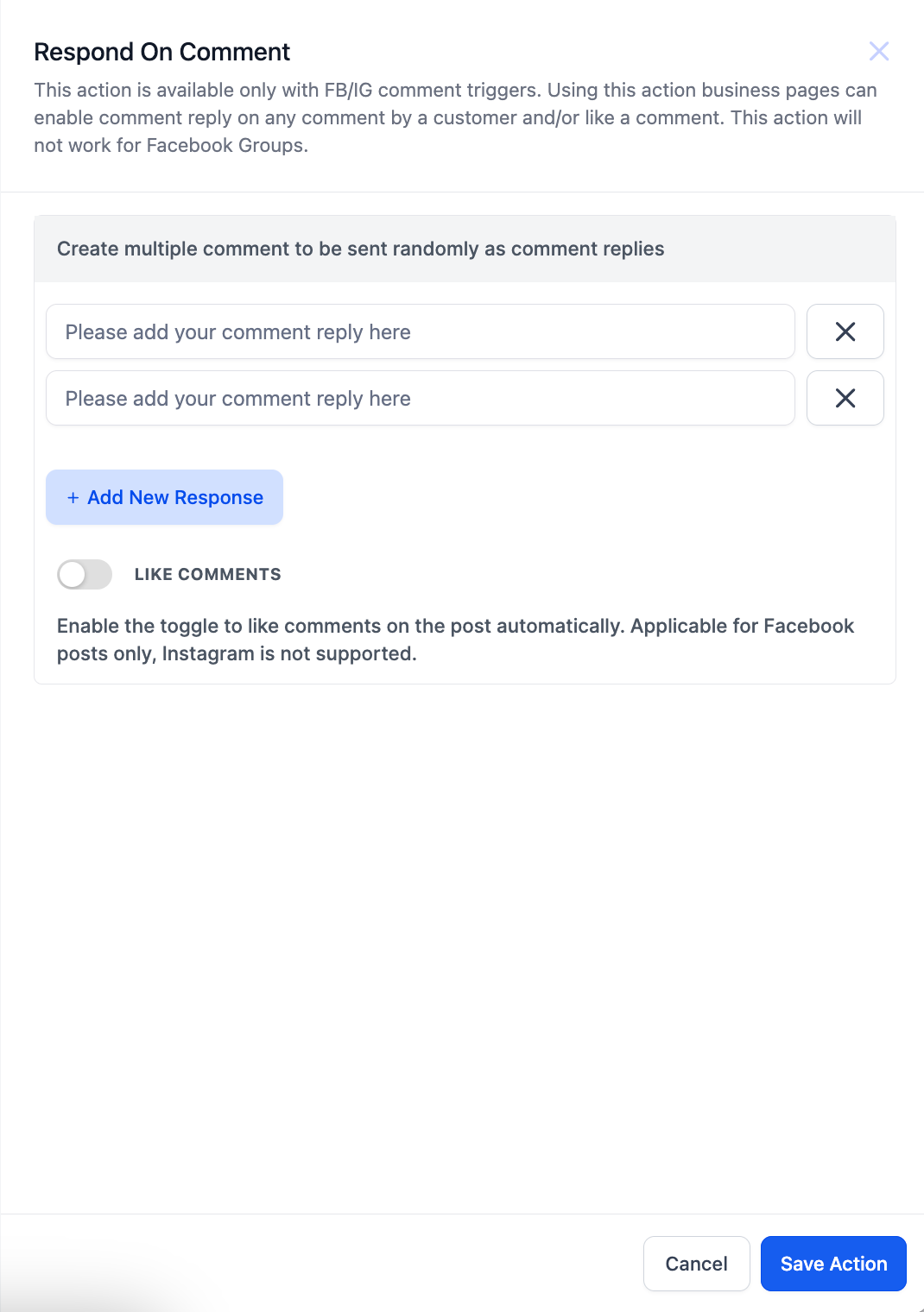 - You can add multiple replies and system will randomly select from these options and reply to comment.