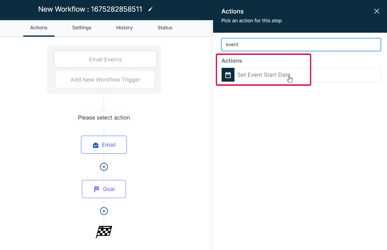 The “Set Event Start Date” Workflow Action is a dynamic tool that allows you to schedule tasks and reminders within your workflow for precise event management. This feature is crucial for maintaining well-organized webinars, conferences, or personalized notification systems.