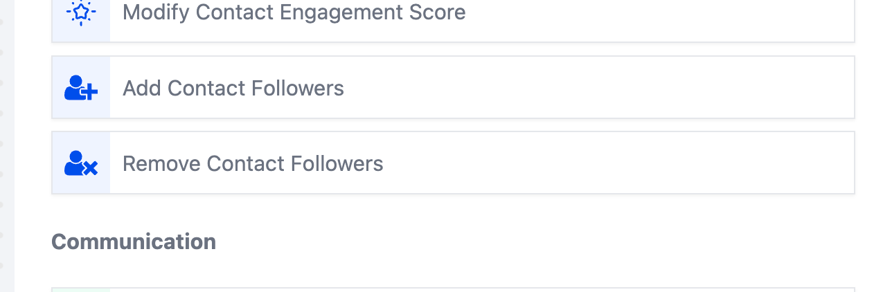 The Add Contact Follower action enables users to add one or more followers to a contact’s profile.