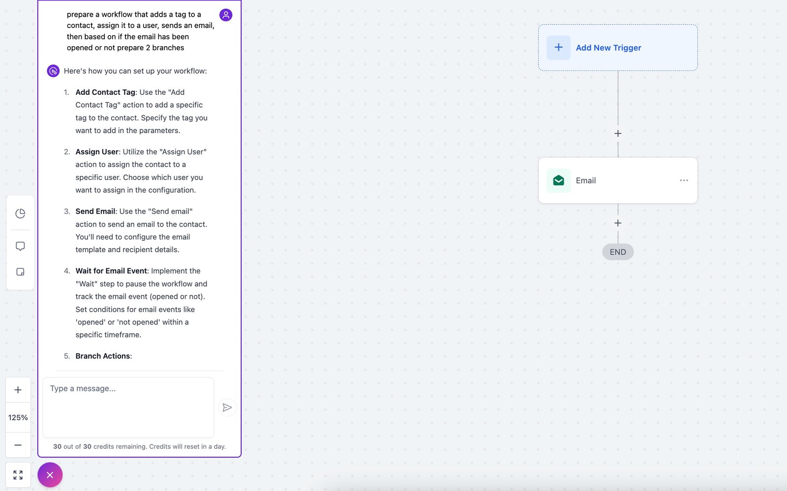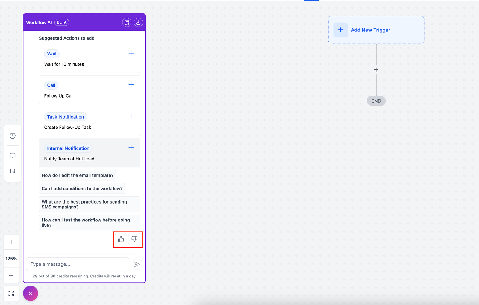 You get 30 free credits every day to use with Workflow AI. Each time you ask for advice or add an action, you use one credit. If you need more credits, you can buy the AI Employee plan for unlimited access.