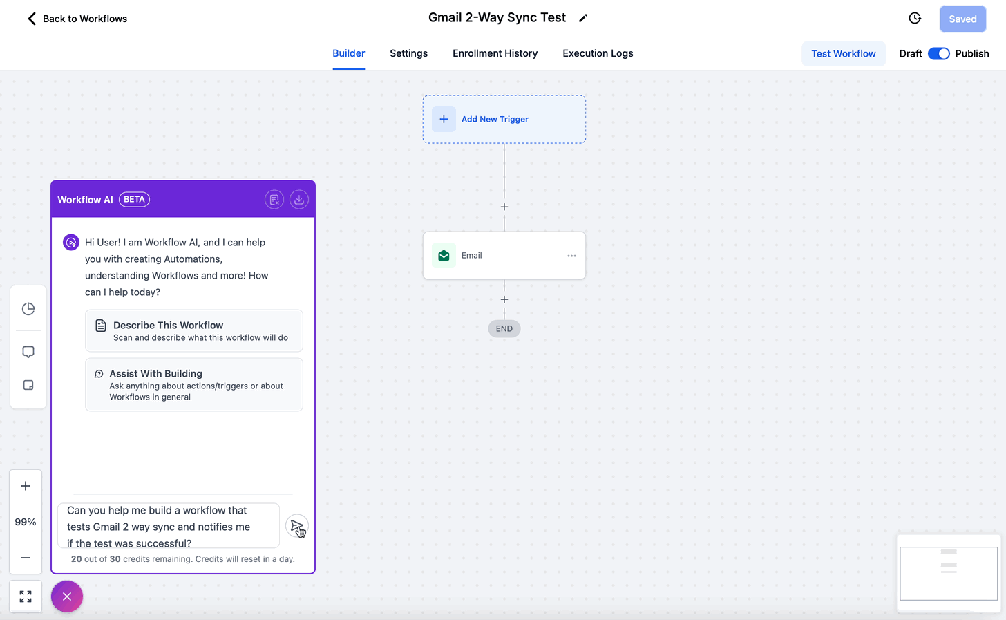 If you are having trouble building your workflow, or you just want help from AI to build the best possible workflow for your situation, you can use Workflow AI to get this done fast and easy!