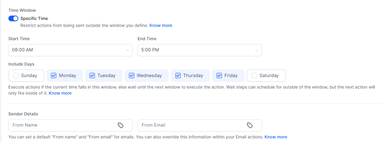 Usage Case 1: If you send marketing communications like promotional emails or special offers, setting your workflow to ‘Specific Time’ can help you send these messages during peak engagement hours.