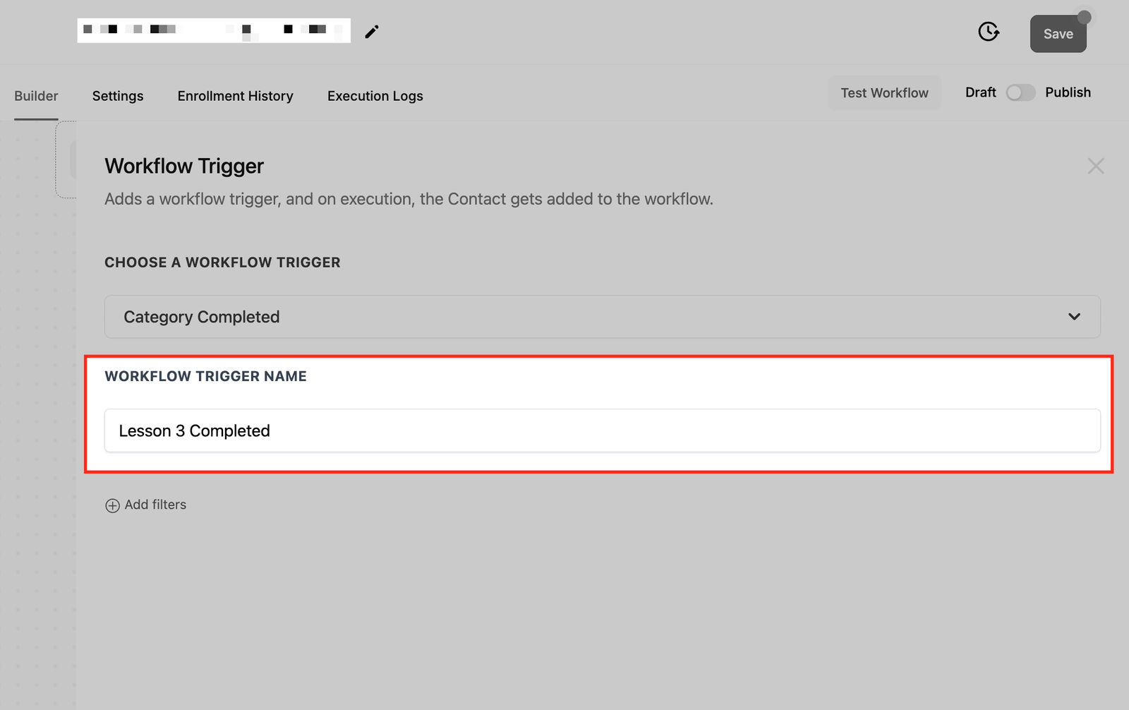 Enter a descriptive name, such as “Course Completion Trigger” or “Product Category Completed.”