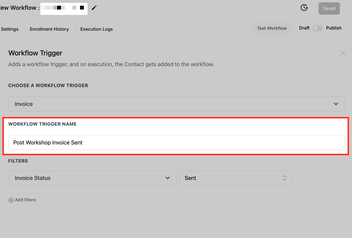 Give the trigger a descriptive name for easy identification, such as “Post Workshop Invoice Sent”