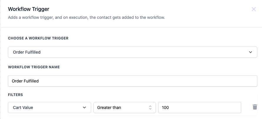 - Workflow Trigger Name: Name your trigger, such as “Order Fulfilled”.