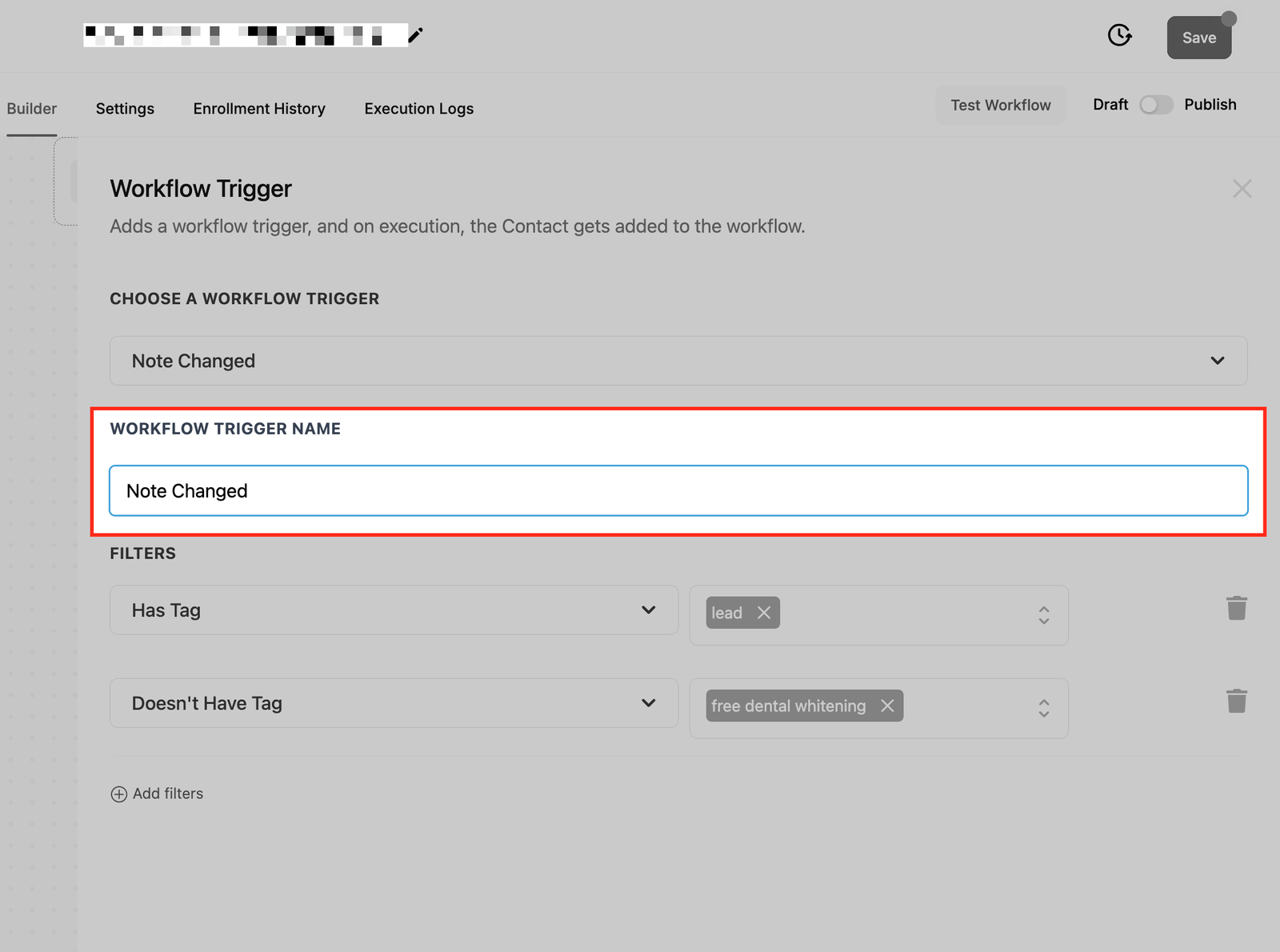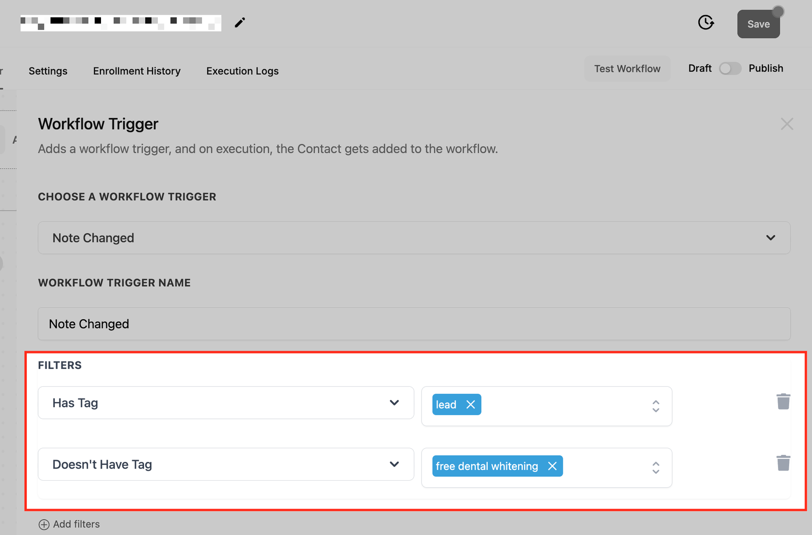 - Filter-Based Precision: Allows workflows to target specific contacts based on tags, ensuring the right action is taken for the right contacts.