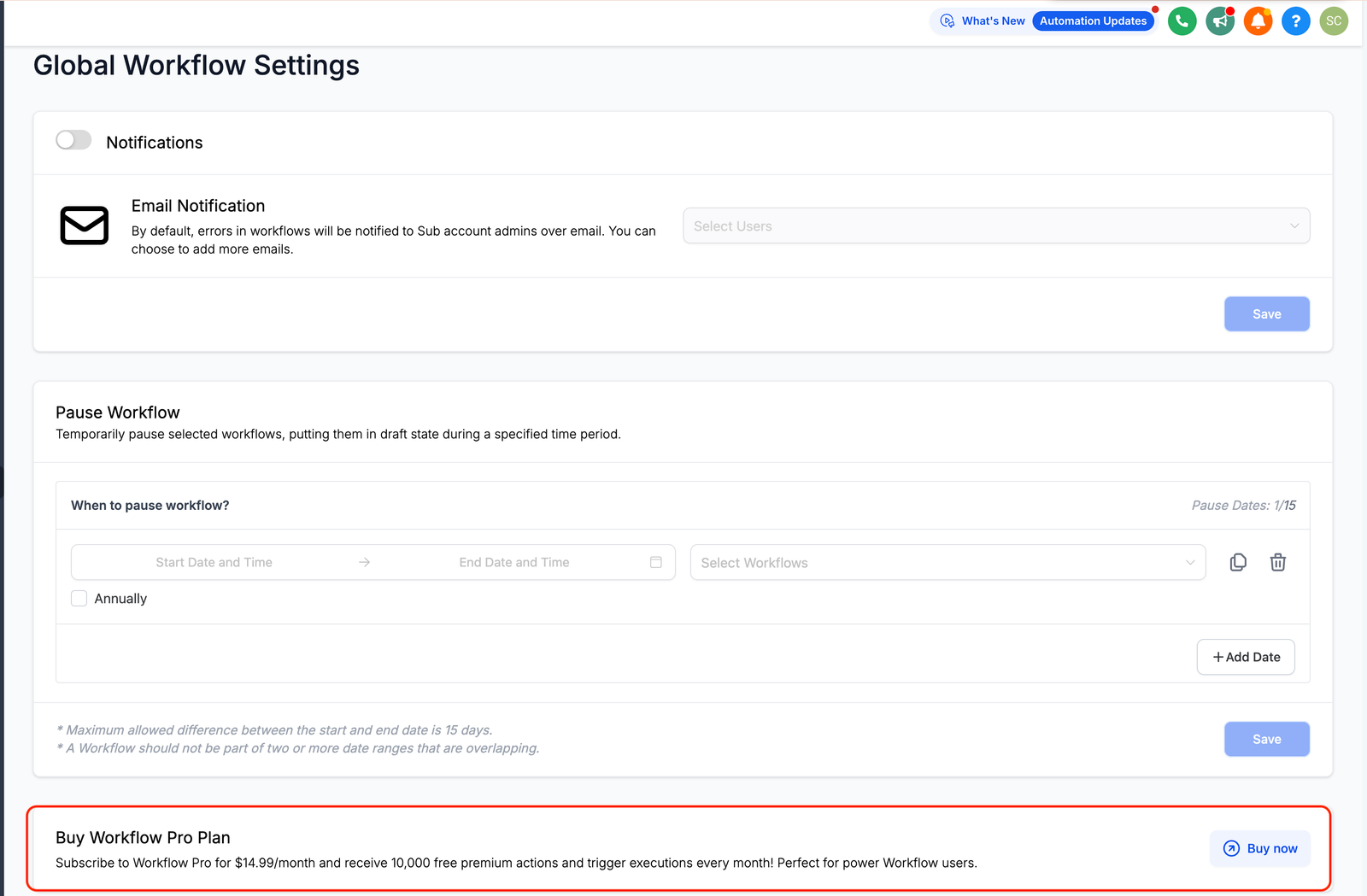 Introducing a new pricing plan called the Pro Plan, designed to help agencies save up to 40% on monthly premium workflow costs for most locations. Perfect for power Workflow users. Starting at $10 for 10,000 premium actions and triggers.